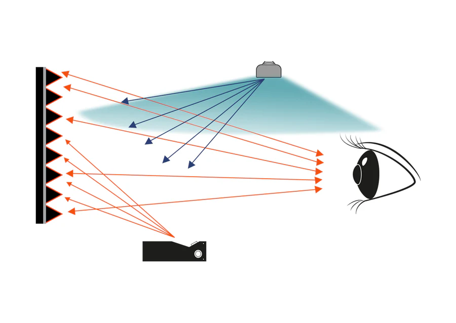 Et ce qui est spécial… Notre nouveau tissu CLR maintient sa suppression de la lumière ambiante de manière linéaire sur toute l’échelle de gris ! Cela signifie que le gamma global de l’image reste à un niveau de contraste élevé et que la qualité de l’image projetée reste largement inchangée, même lorsque l’éclairage est allumé – ce n’est pas un jeu de chiffres, mais de véritables indicateurs de performance !