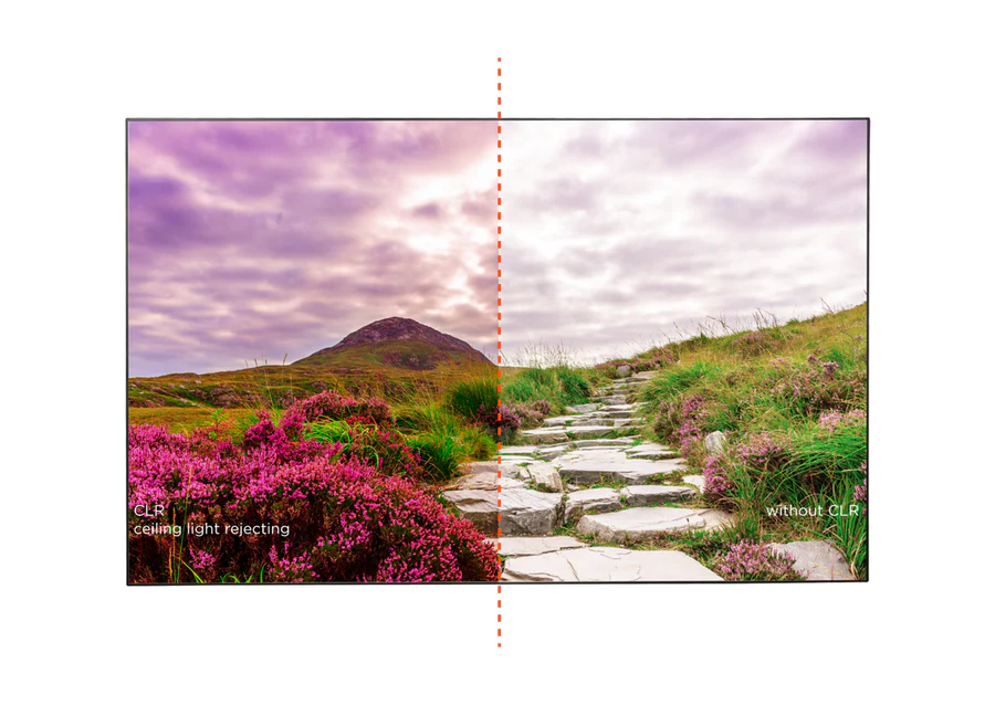 Notre écran cadre CLR V2.0 combine les avantages des écrans actuels avec la taille d’un écran de projection. L’écran de projection multicouche spécialement développé garantit un contraste, un niveau de noir, une luminosité et des couleurs vives sans précédent à la lumière du jour ou dans des conditions de lumière ambiante.