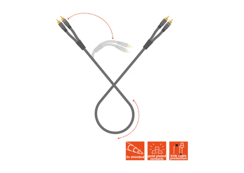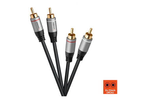 Le câble audio 2x RCA de celexon transmet les signaux audio en qualité stéréo et est donc idéal pour la connexion entre des appareils sources audio (par ex. smartphones, lecteurs MP3, ordinateurs portables, etc.) et des systèmes hi-fi ou home cinéma.