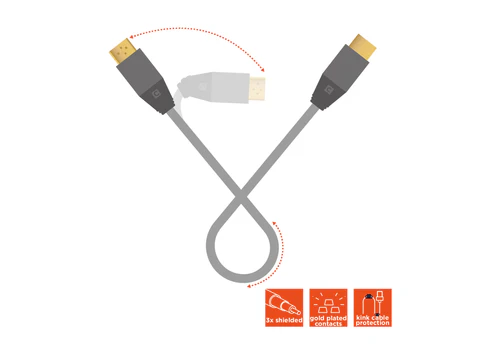 Les câbles HDMI Professional Line sont triplement blindés et, grâce à leurs contacts plaqués or, garantissent une résistance élevée à la corrosion et des performances de transmission fiables.