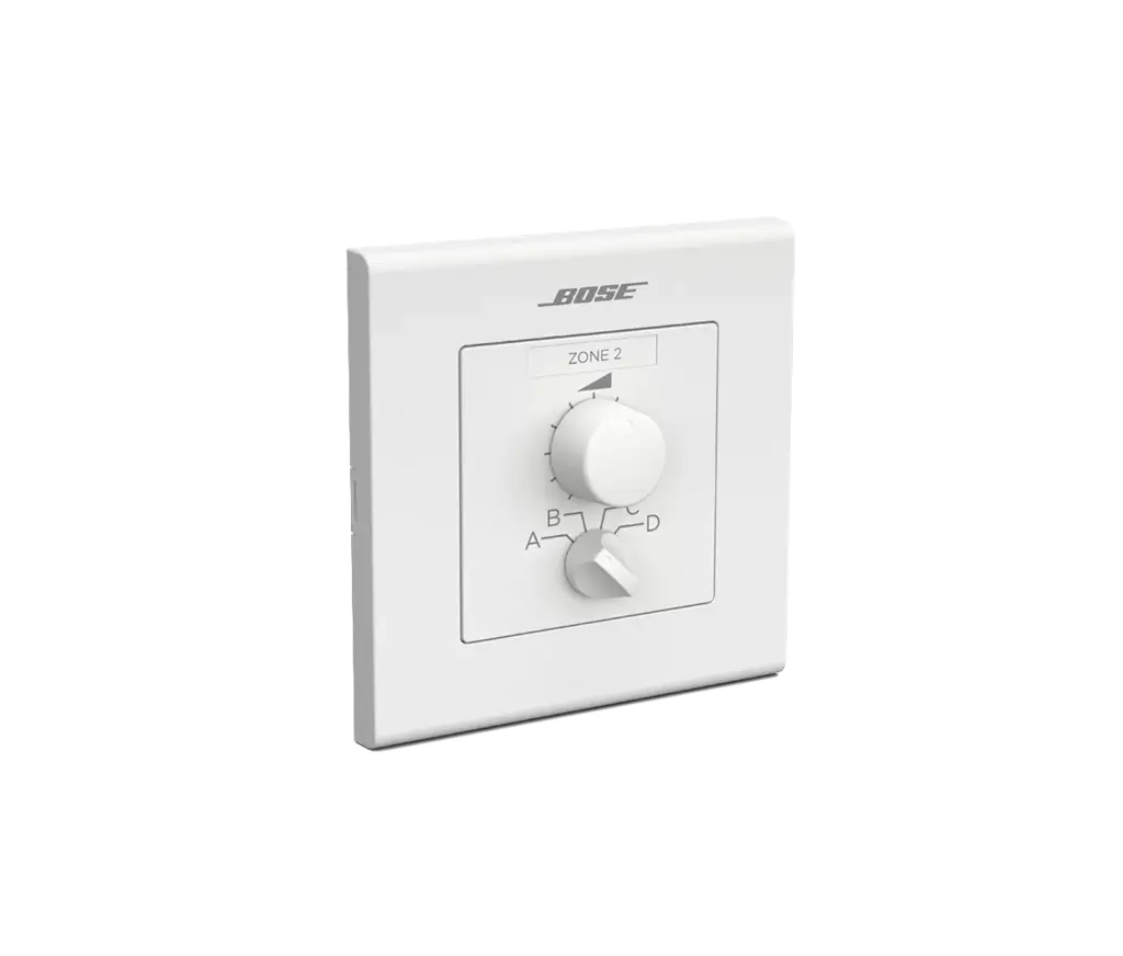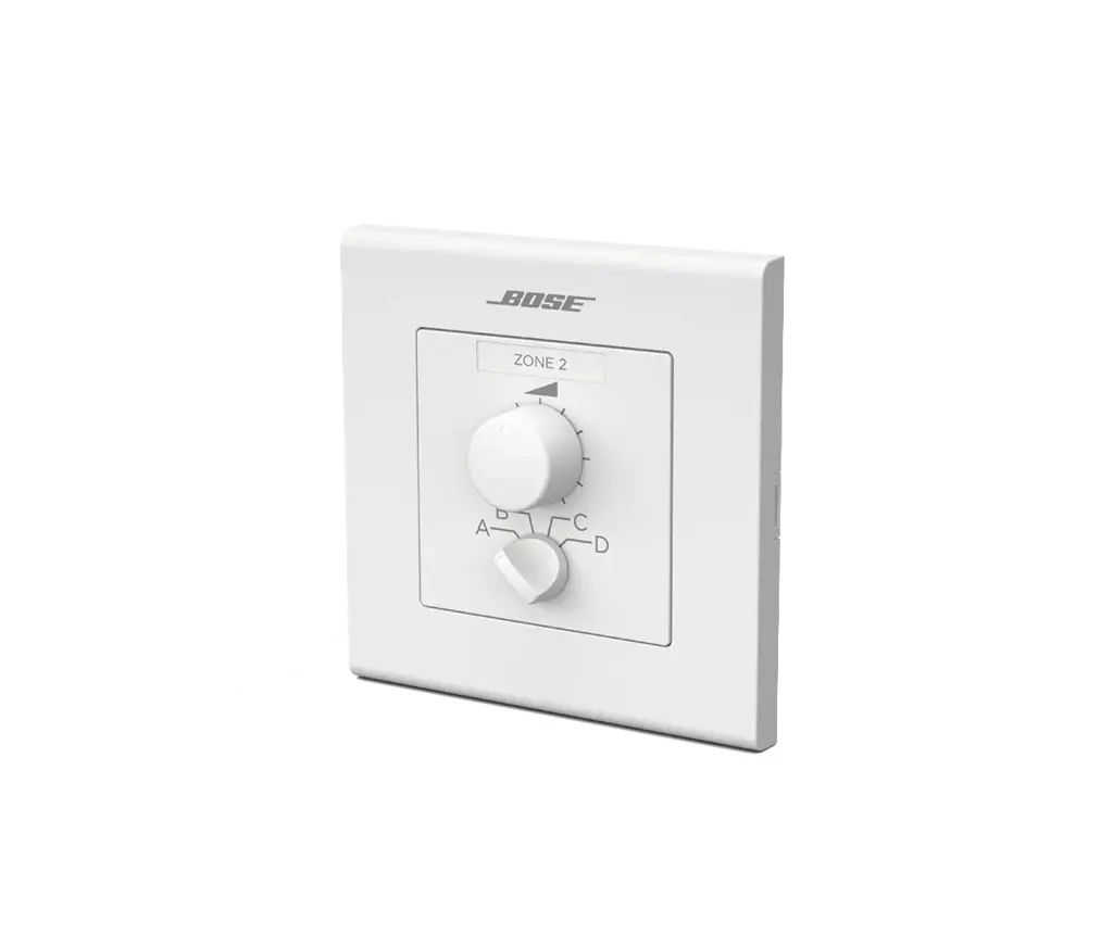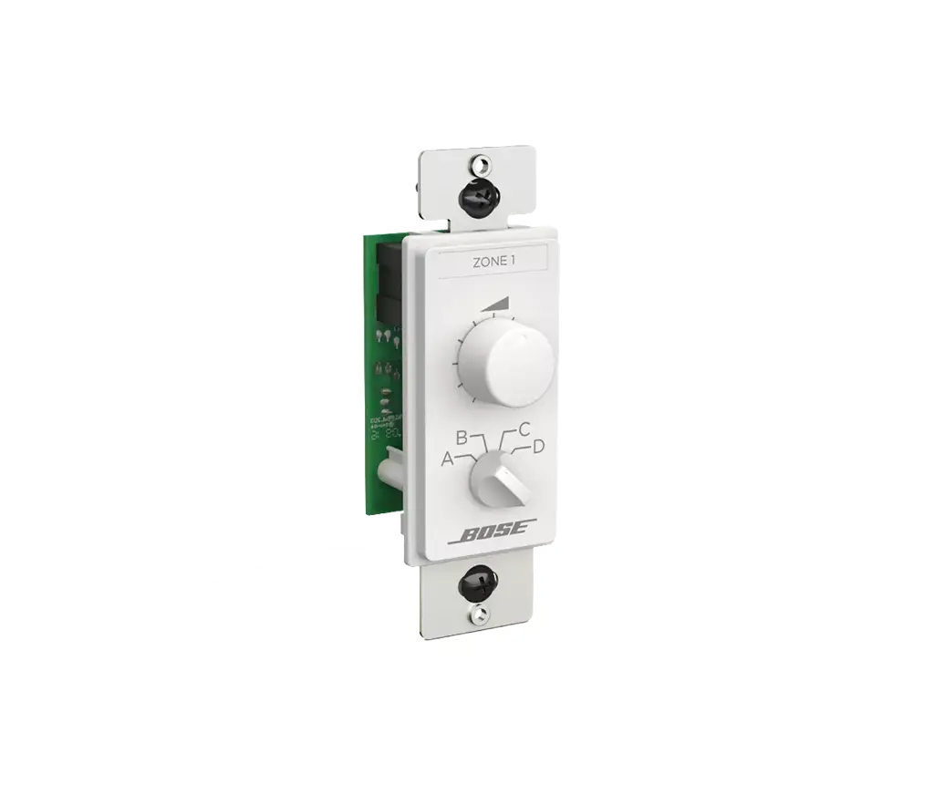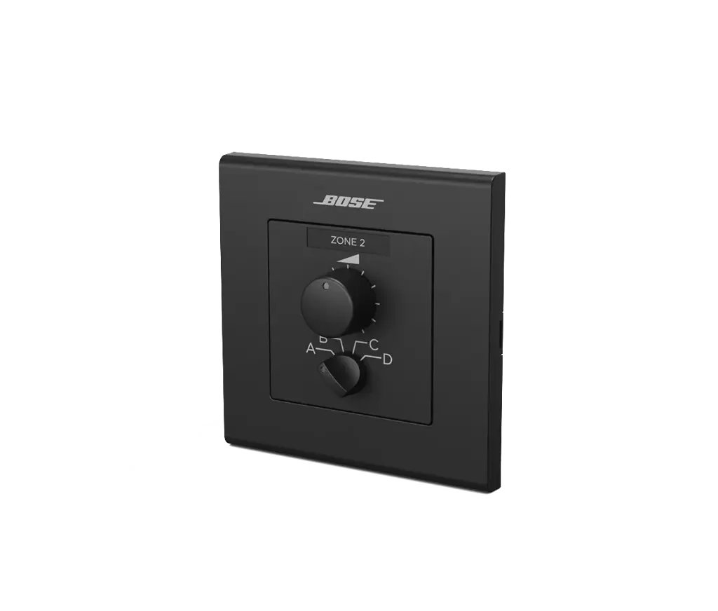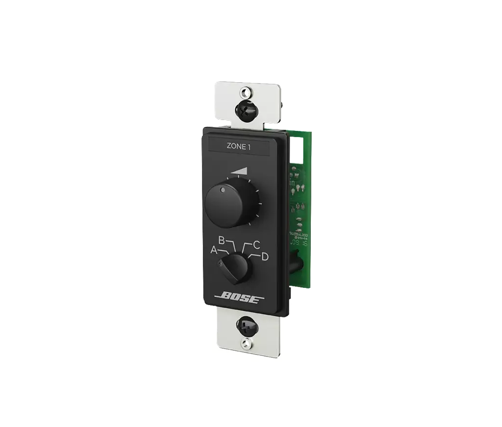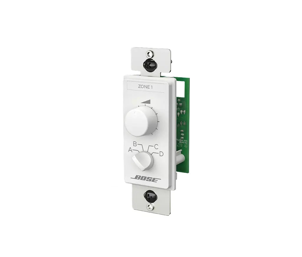 Les contrôleurs de zone Bose Professional ControlCenter CC-3 permettent de sélectionner le volume et la source A/B/C/D pour les produits ControlSpace. Trois modèles sont disponibles en noir ou en blanc et conviennent aux boîtiers électriques à un groupe en Amérique du Nord, en Europe et au Japon.