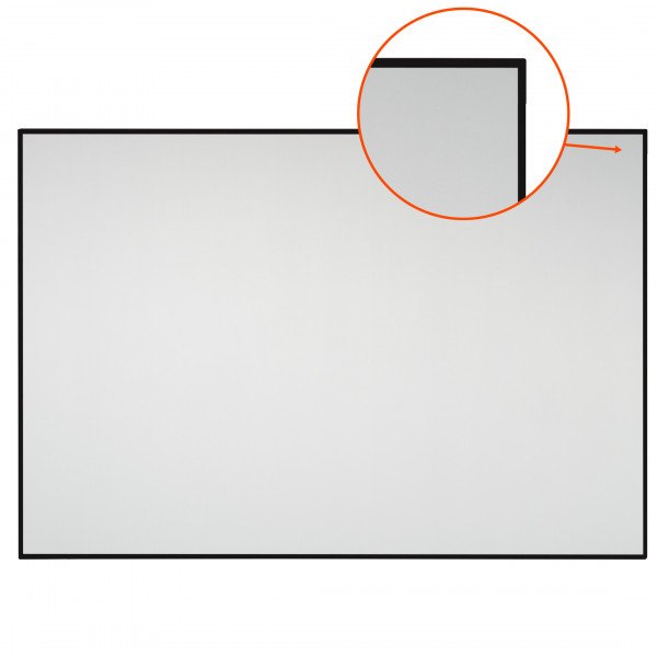 Dans ce cas, il faut veiller, lors de l’installation, à ce que la toile de l’écran soit tendue sur le cadre de support avec un soin particulier et avec une couverture complète (jusque dans les coins). Mais l’effort en vaut la peine – grâce à l’absence de cadre, l’image peut être étendue jusqu’aux bords et donne l’impression d’être flottante et sans cadre sur votre mur. Une apparence impressionnante avec une diagonale d’image allant jusqu’à 135″ !