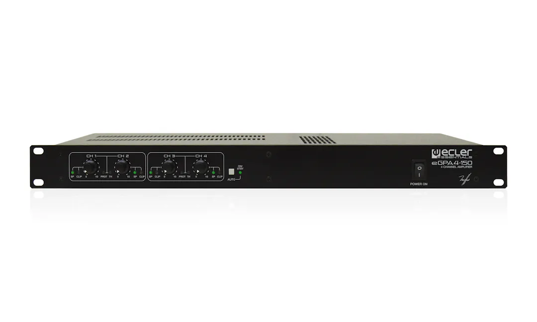 eGPA4-150 est un amplificateur multicanal à haut rendement (classe D) de 4×150 W RMS sous 4 ohms. Fonction veille automatique et conception sans ventilateur, 100% silencieux. Protections thermiques et contre les surcharges. Système anti-clip.
