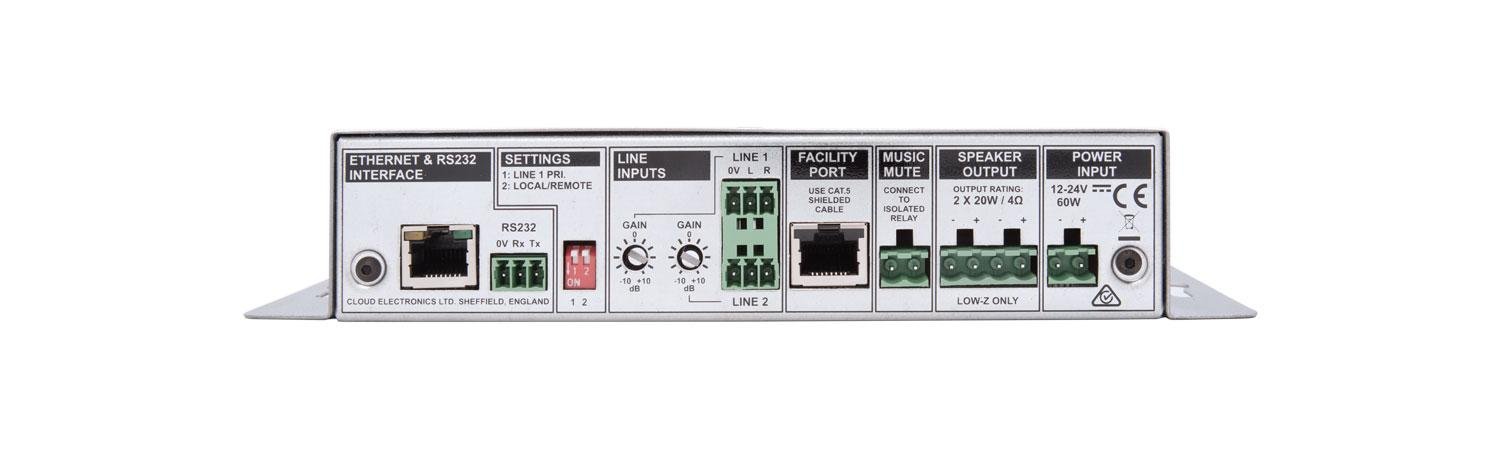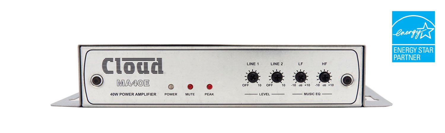 Le MA40E est alimenté par une alimentation 12-24 V et offre une fonctionnalité de coupure de la musique pour permettre une connexion simple à l’alarme incendie et à d’autres interfaces et constitue un excellent pont entre les solutions centralisées et décentralisées.