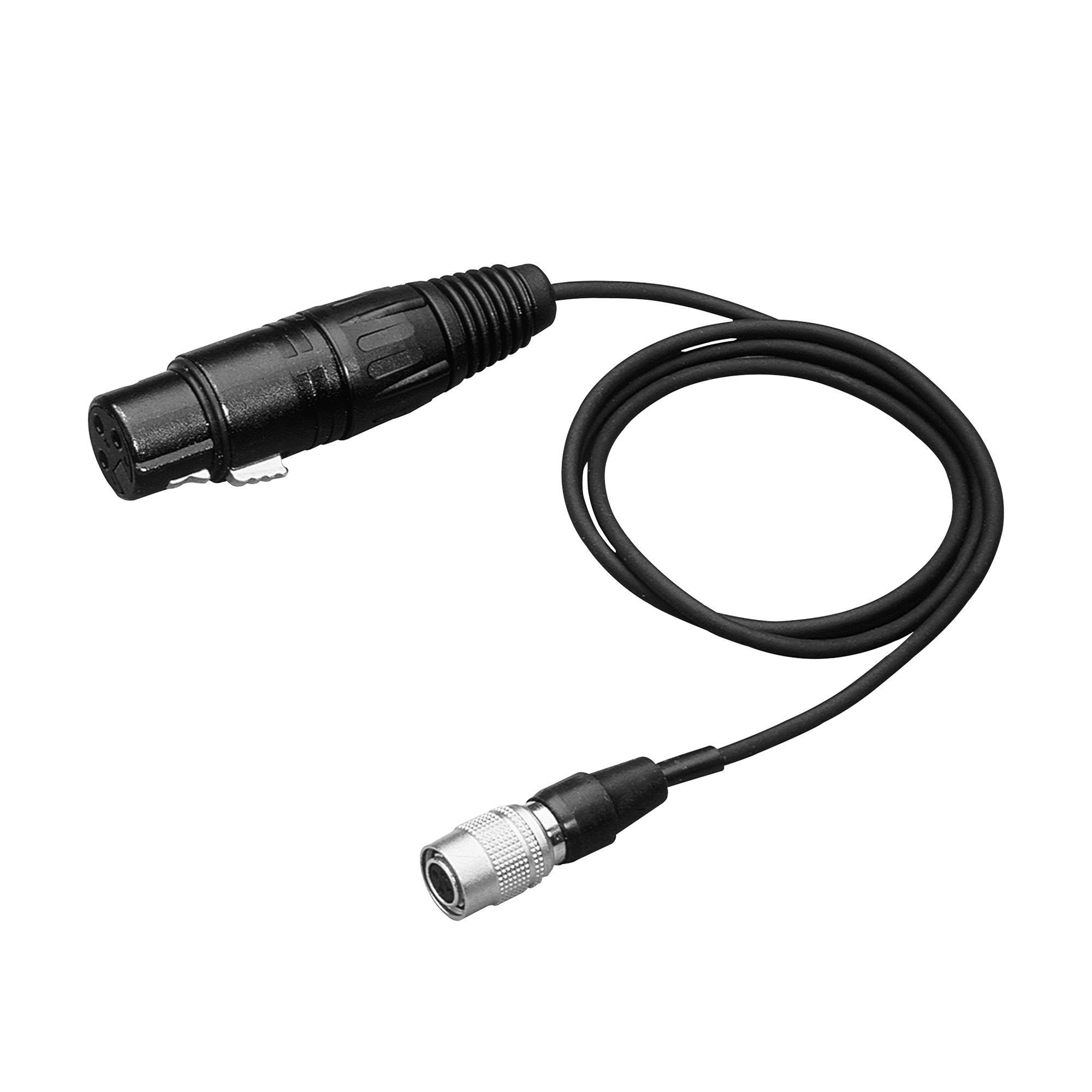 Connecteur XLRF à 3 broches vers connecteur verrouillable à 4 broches pour une utilisation entre un microphone dynamique à faible impédance (ou un microphone à condensateur alimenté par batterie) et un émetteur de poche de type cW Audio-Technica. Câble de 29,5″ (0,75 m).