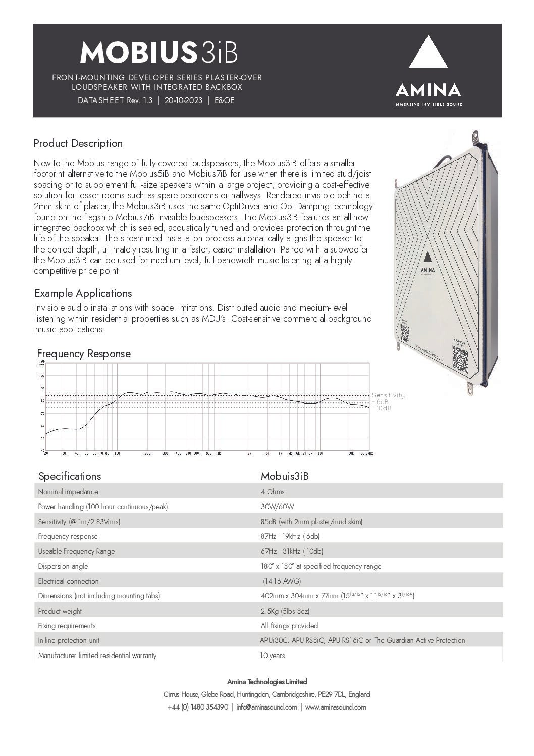 Le Backbox CV300 crée une cavité acoustiquement réglée et cohérente derrière le haut-parleur, contribuant à la fois à garantir une qualité audio constante et à minimiser la transmission du son aérien vers l’arrière lorsque les haut-parleurs Mobius sont installés dans des murs/plafonds à ossature bois.